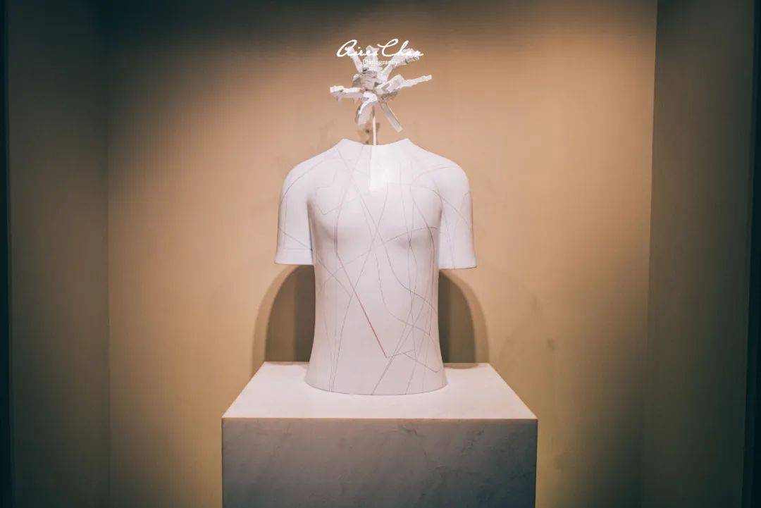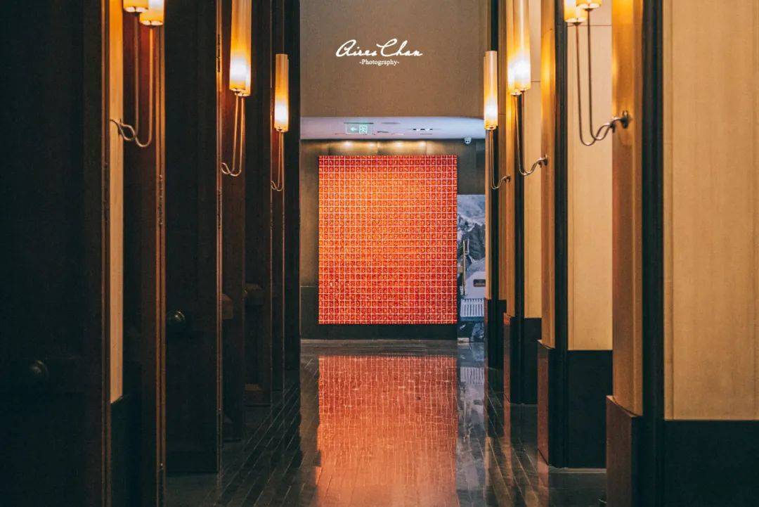 酒店里还摆放了不少艺术品,比如走廊上的天然水晶摆设、公区的雕塑品,宣纸作品《传承》、布面油画《华胥梦》,把扇子组成的「蜜瓜」、艺术家陈灵刚在艳丽的花墙上对春秋时期书法的再创作,这些都是设计师重构城中奢华府邸的独到见解。