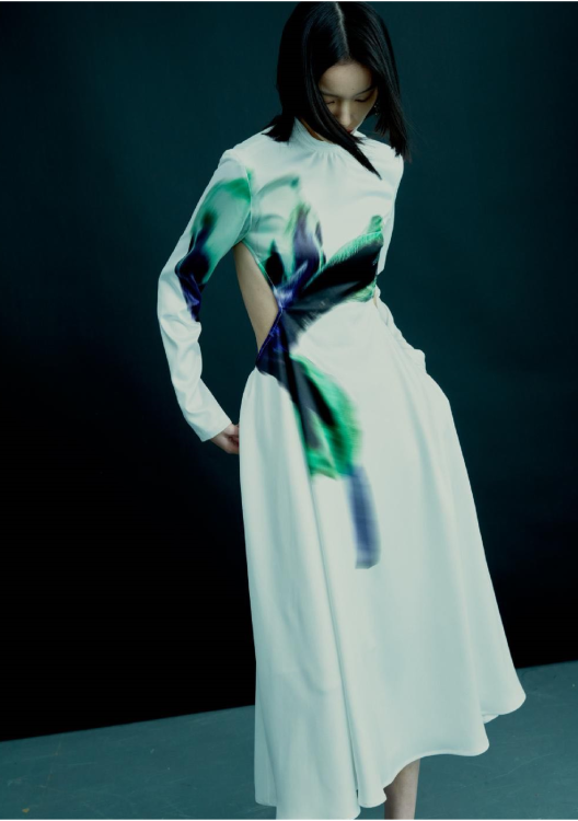 本季通过真丝绸缎、水洗牛仔、柔软的羽毛、水墨印花等元素,塑造品牌的特色:既有80年代的热情,又有40年代的含蓄,还有Z世代的风华正茂,除了设计师对于中式元素的执着之外,更是对不同时代的中式服装的一种致敬。