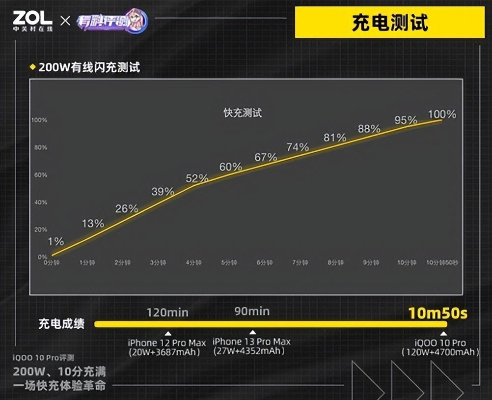 01 快充与续航:200W快充速度快到夸张按照评测惯例,文章开头我应该先介绍iQOO 10 Pro的外观。不过iQOO 10 Pro的200W超快闪充实在是很难让人忽视,所以我们这次从充电开始,来看看这第一款充电功率突破200W的手机到底能让充电快到什么程度。