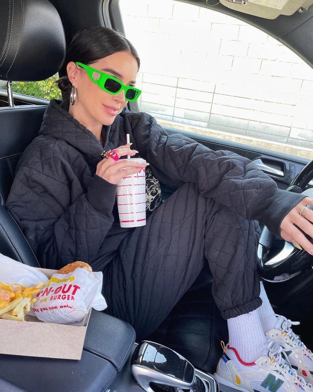 吊带裙配墨镜?性感中又带着一点小危险。感觉整个搭配都在说“老娘很美,但跟你没关系。”