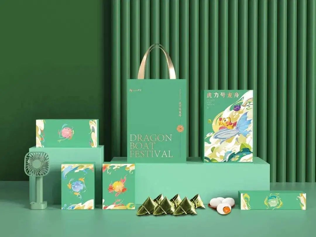 今年虎牙以“龙舟”为灵感,推出了「虎力号龙舟」为主题的端午礼盒,配有传统美食2枚鸭蛋和6只粽子以及一个桌面电动风扇。