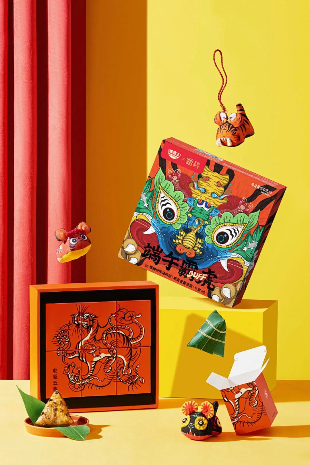 螺霸王今年搞起了事情,联合传统手作民艺“王的手创”推出了「端午霸虎」螺蛳粉粽子礼盒,还玩起了霸虎即“buff”的谐音梗,传达了百毒不侵、水逆退散的祝福。
