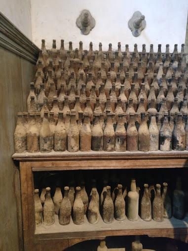 辗转回到一开始看电影的居室,先往里走穿过一个举办宴会用的大厅才能到达。宴会厅的一面墙壁前放置着13个大型的酒桶,其中两边对称的12个是按照基督的12圣徒顺序摆放的,而中间大的一个巨型木桶里装的则是供西班牙国王专用的酒,可见西班牙国王应该不止一次来过这里。