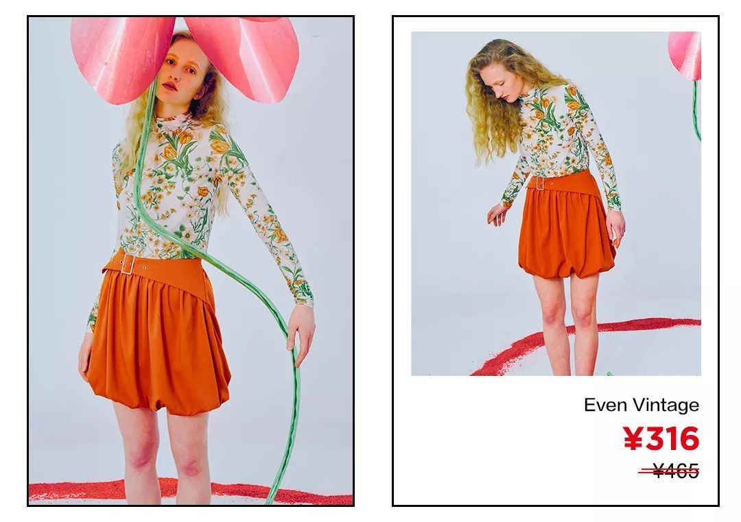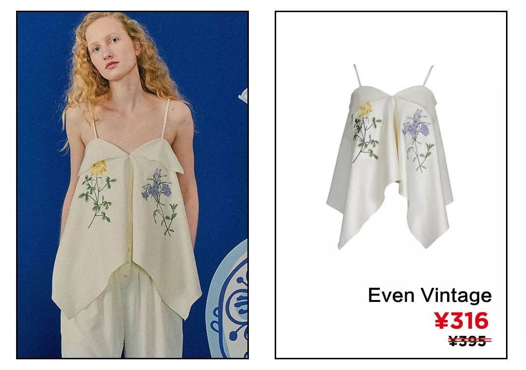品牌善于站在女性的角度思考设计,除了多玩褶皱、不规则等巧思,Even Vintage 的印花元素同样充满了浪漫复古的气息,小碎花和时下大热的花草图案,每款印花元素都展现出品牌风格的别致怪趣。