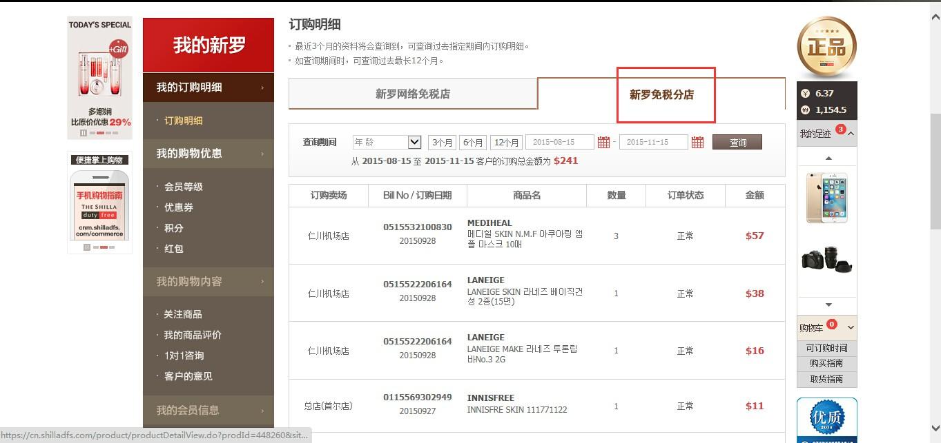 付款成功之后,点击右上角的我的新罗,查看购物明细就可以直接打印交换券啦,或者记住交换券编号也可以哒