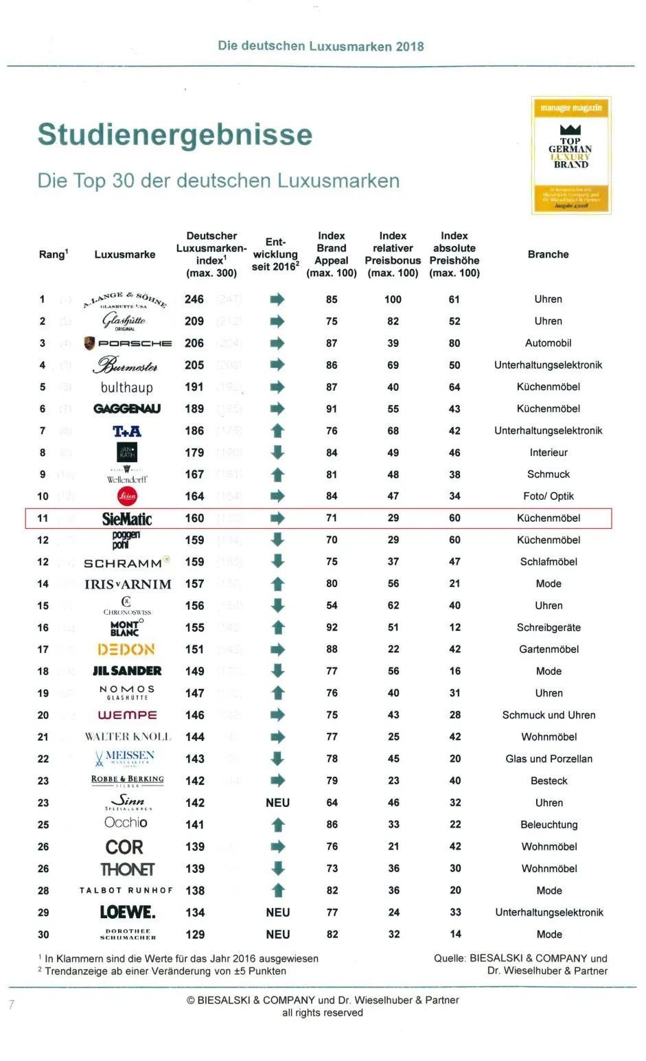 除了在盖得排行榜取得的辉煌成就,西曼帝克还连续多届荣登德国品排行榜厨电行业前三甲。