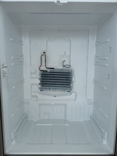 上图为美的495的冷藏室与冷冻室,没有互通的风道,冷冻室、冷藏室内胆背板上分别安装了一个轴流风扇。这样的设计从根本上杜绝了冷冻室、冷藏室之间相互串味的问题。