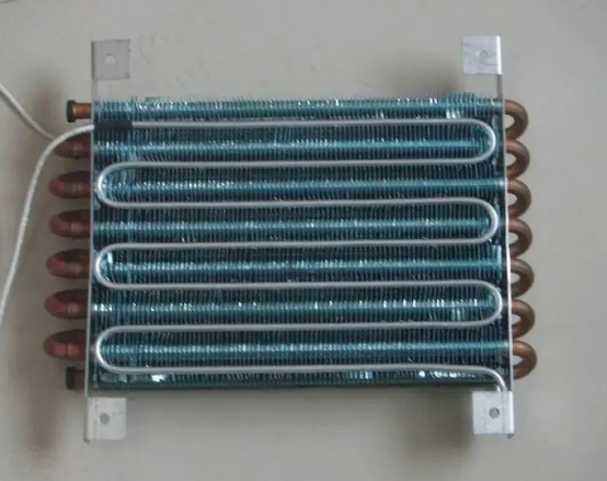 翅片盘管式蒸发器常见直冷冰箱冷藏室以及风冷冰箱中,换热率比盘管式换热器高很多。因为我们拆机的三台冰箱都是风冷式的,所以蒸发器都采用的是翅片盘管式。