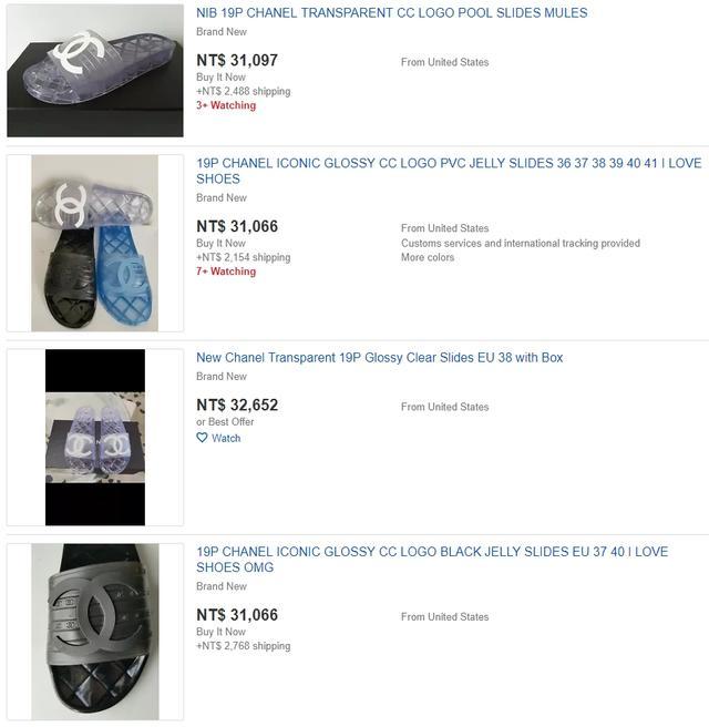 有名人的加持,又是品CHANEL的作品,火热程度肯定不会太低。这不,在知名拍卖网站ebay 上,这款拖鞋的市场行情几乎在一千美元左右,折合人民币六千多元。要知道,奶奶的防滑拖鞋在商场百货,大概几十元就能搞定,这款拖鞋加CHANEL logo后却卖贵几十倍!不知道这款鞋是更看中logo还是设计?