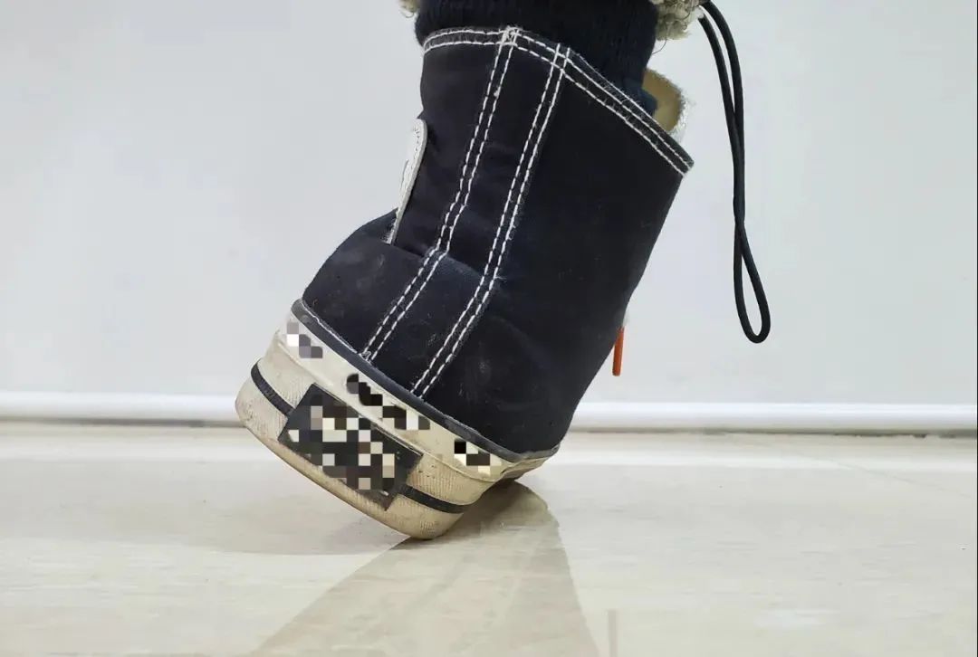 板鞋落地后,“嗡”的一声,震动感结结实实地透过鞋底传到脚底,脚底、膝盖瞬间麻了,刺痛得眼泪都快掉下来……