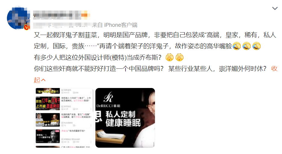 去年,标榜法国皇室血统的国产品牌“慕思床垫”披露招股书,门店售价上万的床垫,成本只有2000元,网友炸了锅把它骂上热搜。