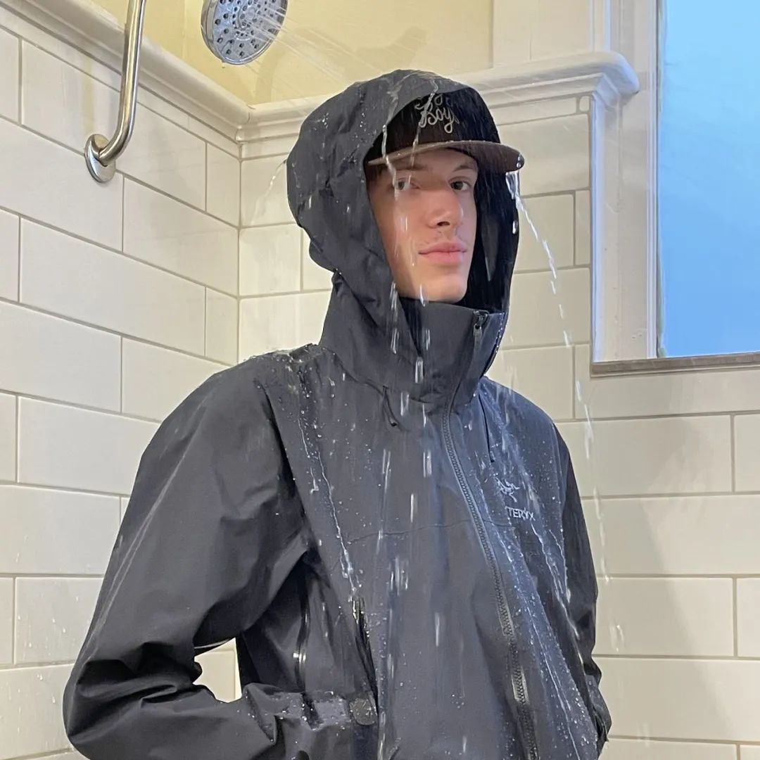 穿着一件始祖鸟,在家里感受水落衣服而不沾的果,就仿佛置身于热带雨林瀑布下,那一瞬间的享受才是大家选择它的原因。