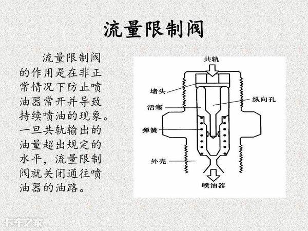 节流阀是镶嵌在共轨管体上的,并不是常开状态,只有在油压达到一定高度时它才会打开,也是为了防止喷油器常开故障后导致大流量的泄压而设计。
