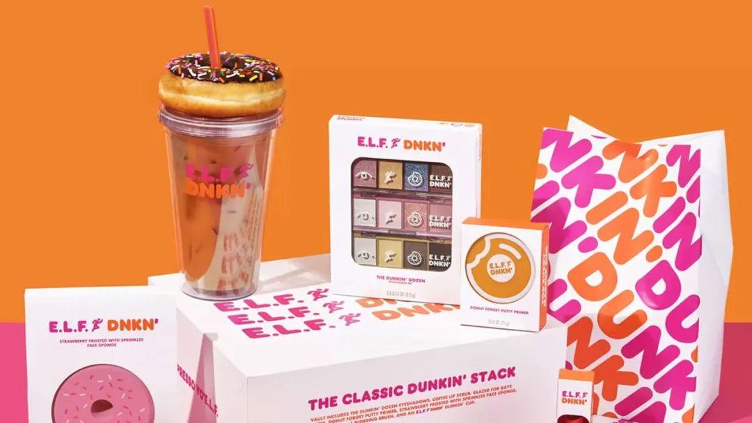 2022年4月,在Tiktok上深受Z世代喜爱的美容品牌elf Cosmetics与美国十大快餐连锁品牌之一Dunkin联合推出限量版彩妆系列。灵感来自Dunkin的甜甜圈和咖啡的色调、质地和香味,联名款产品名称与Dunkin菜单相似:Dunkin' Dozen香味眼影盘,有闪亮的粉色、蓝色、黄色和巧克力棕色;两款“Glazed for Days”唇彩;一款咖啡香味唇部磨砂膏;吸管形状的化妆刷;还有形似草莓糖霜甜甜圈的化妆海绵。