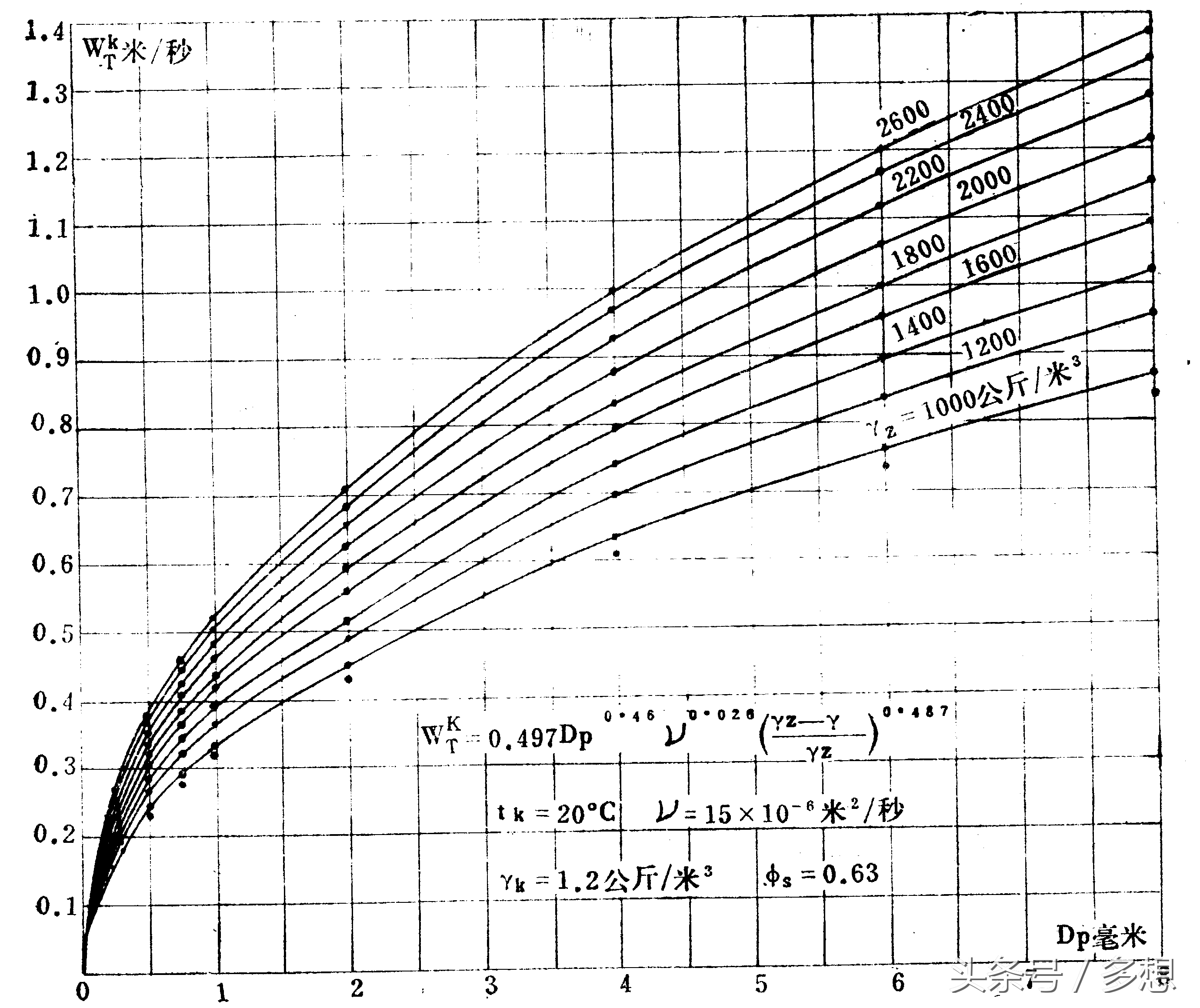 众多学者用不同的方法和实验研究临界流化速度umf,提出各种各样的表达式,建立umf与固体颗粒的粒径、重度、流化介质的比重、动粘度及温度的关系,其中有: