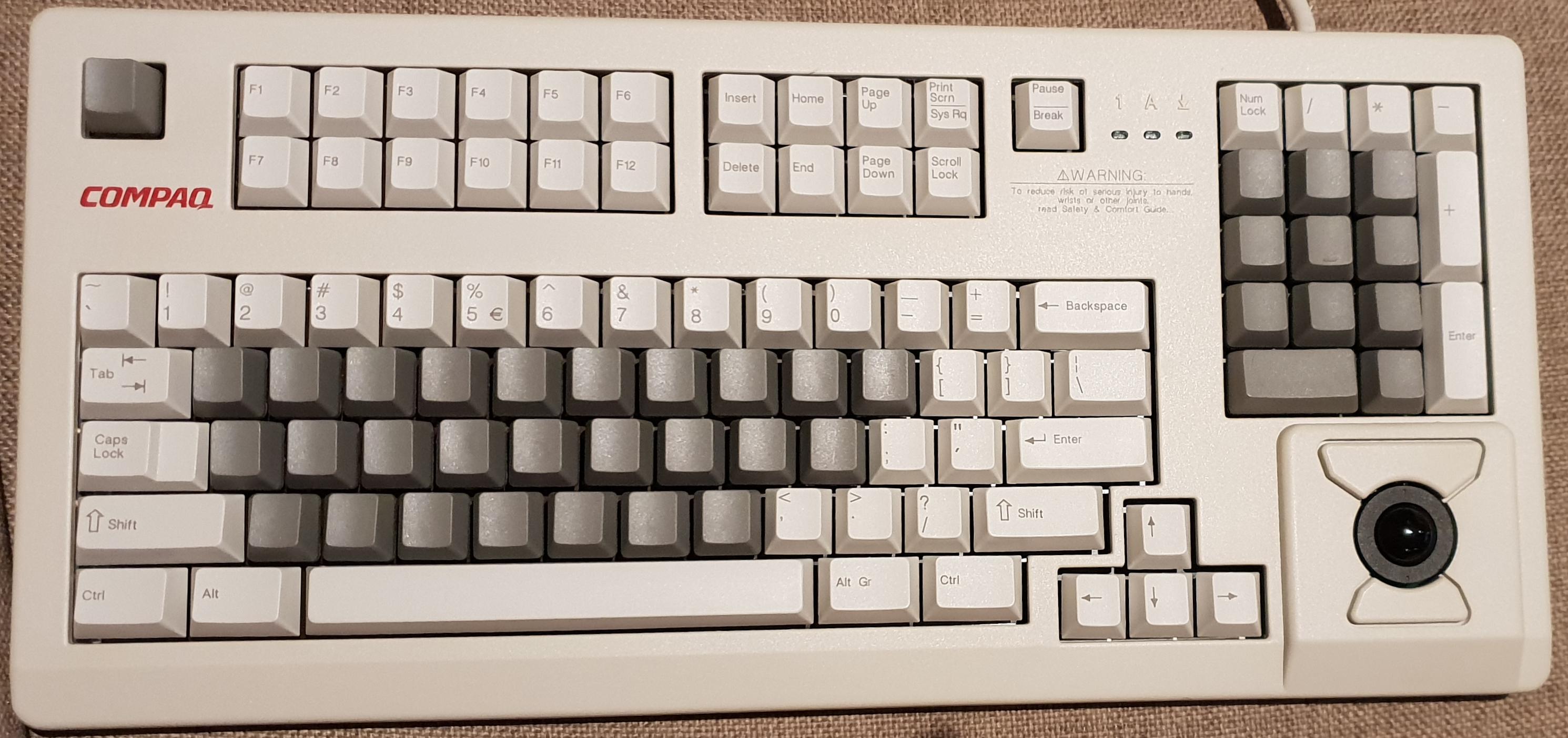 11800我还没在闲鱼上见过打CHERRY标的,全是康柏标!PS口,只有茶轴,轨迹球是罗技的,拆开能看到罗技标,看他英文网站上描述康柏oem的颜色要更黄,确实国内的洋垃圾都是黄橙橙的。原厂键帽均为激光蚀刻的PBT。这个我有一把改好键线分离的,轨迹球完好,其实还挺好用的,就是有点小,使了两天也经常想不起来用,你要买这个要和卖家确认好轨迹球功能!