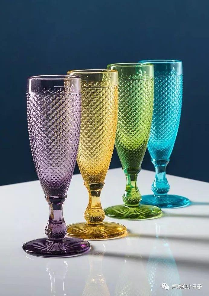 喜欢欧式复古风情的可以看一这款,浮雕ins奢华多色砖石纹香槟杯。