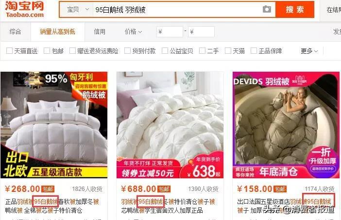 消费者在购买时应选择正规渠道销售的产品。淘宝、拼多多等电商平台上几十到几百块钱标称“95白鹅绒”的羽绒被,大大超出了成本,消费者慎重选择。