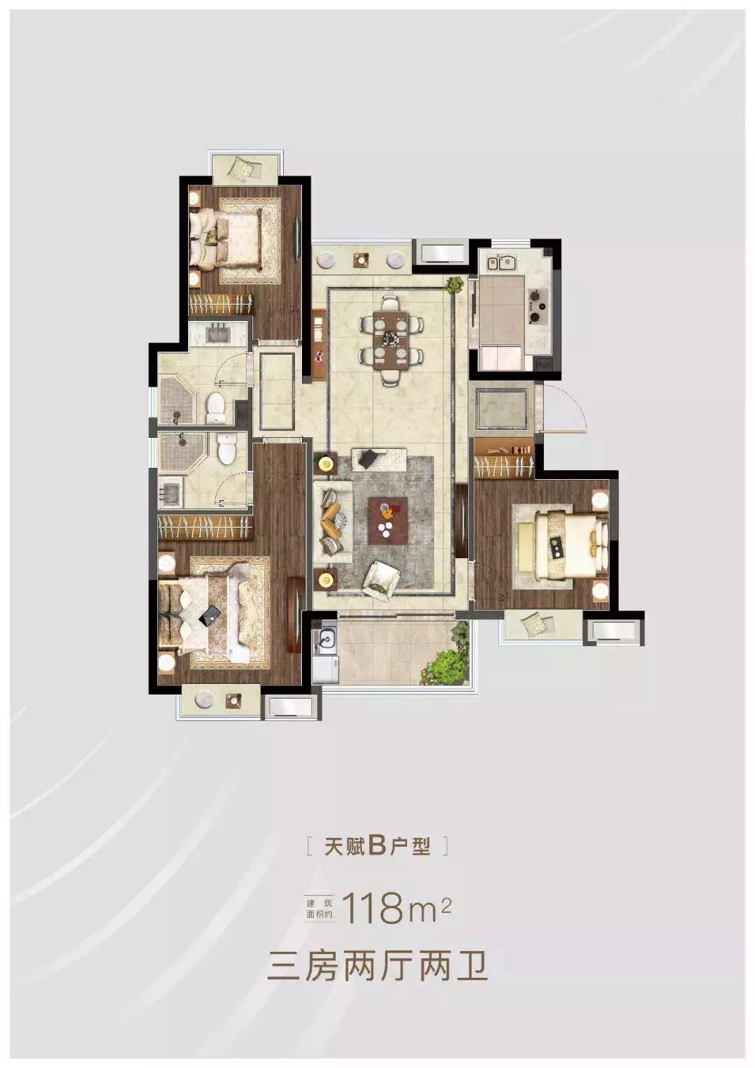 星河天赋预计年前首开1、2号楼,户型面积为103、118、143㎡,共142套房源,毛坯现房交付。