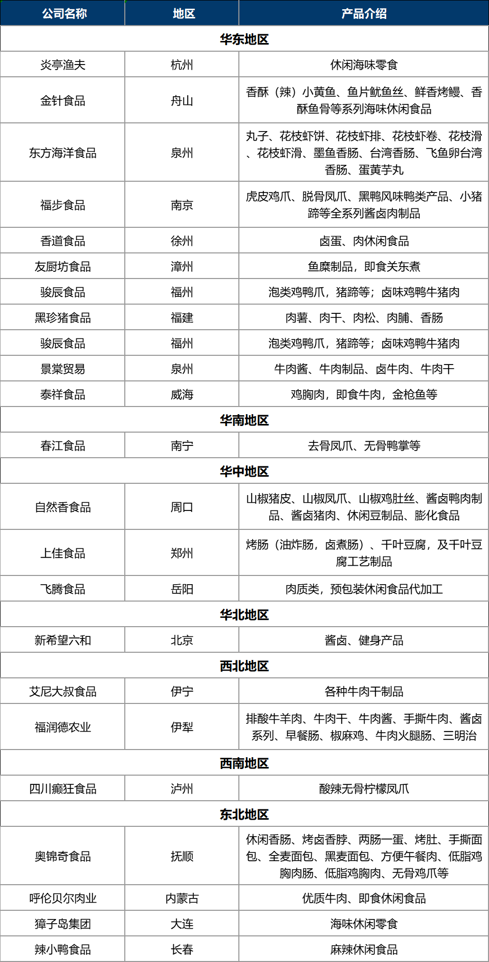 产品图 从左至右供应商以此为:无尽食品(卤味觉醒香辣凤爪)、华协食品(鲨鱼菲特鸡胸肉)