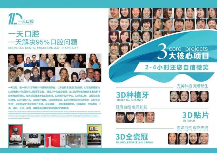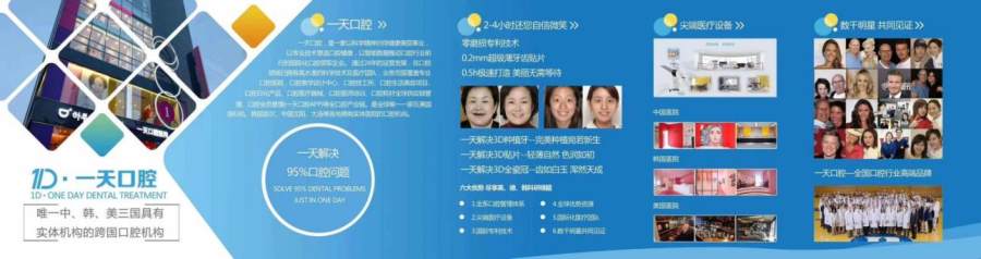 作为口腔行业的专业代表,一天口腔的加盟奠定了“微牙美啦”项目的卓越和领先。作为一家以科学精神对待健康美丽事业,以专业技术塑造口腔健康,以智能数据推动口腔行业前行的国际化口腔领军企业。一天口腔通过24年的运营发展,在口腔领域已拥有高水准的科学技术及医疗团队,业务范围覆盖专业口腔医院,口腔美学设计中心,口腔技工所,口腔生活美容项目,口腔日化产品,口腔医疗器械,口腔医师培训,口腔耗材供应链管理,口腔会员管理(一天口腔app)等全口腔产业链。是一家在美国洛杉矶,韩国首尔,中国沈阳,上海,杭州,三亚等各地拥有实体医院的口腔机构。