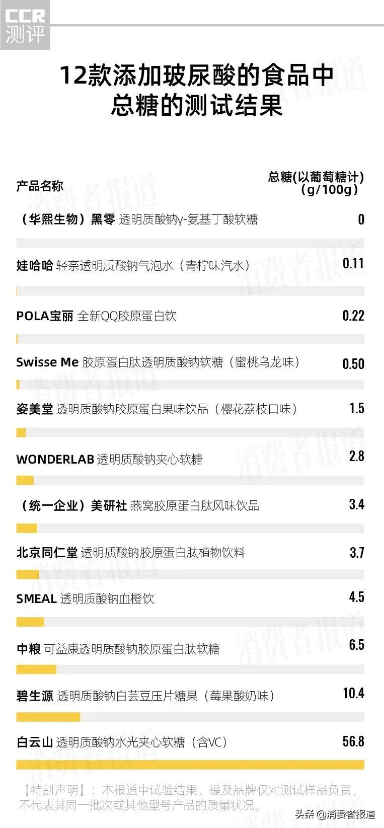 2022年6月,《消费者报道》送检了12款含透明质酸钠(下称“口服玻尿酸”)的食品。