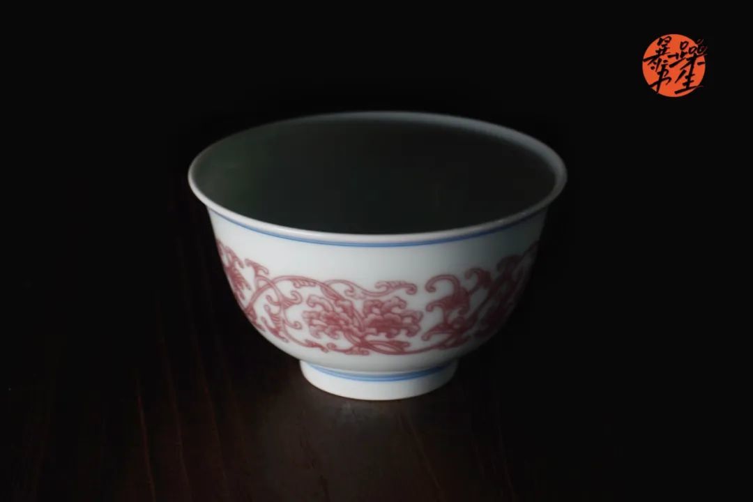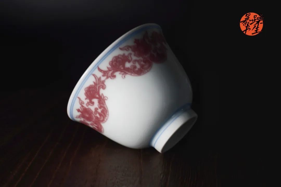二亭这款釉里红缠枝花卉杯,以夺目的花卉作为中心,