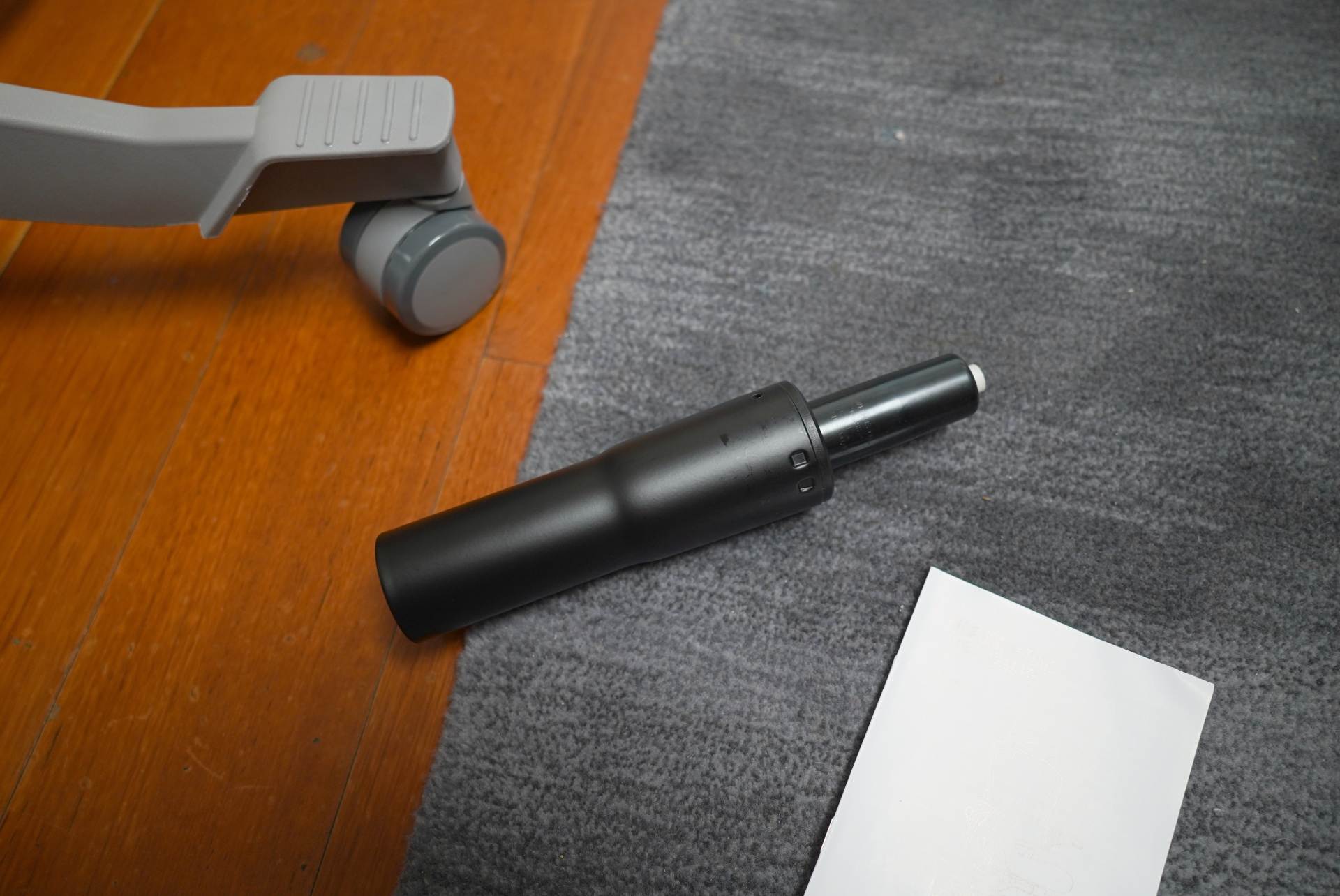 ▲按照说明的安装方法其实还是比较简单的。第一步先安装椅子的脚,直接怼进去就行了,是不是很简单。顺便看看这把椅子的顺滑度。