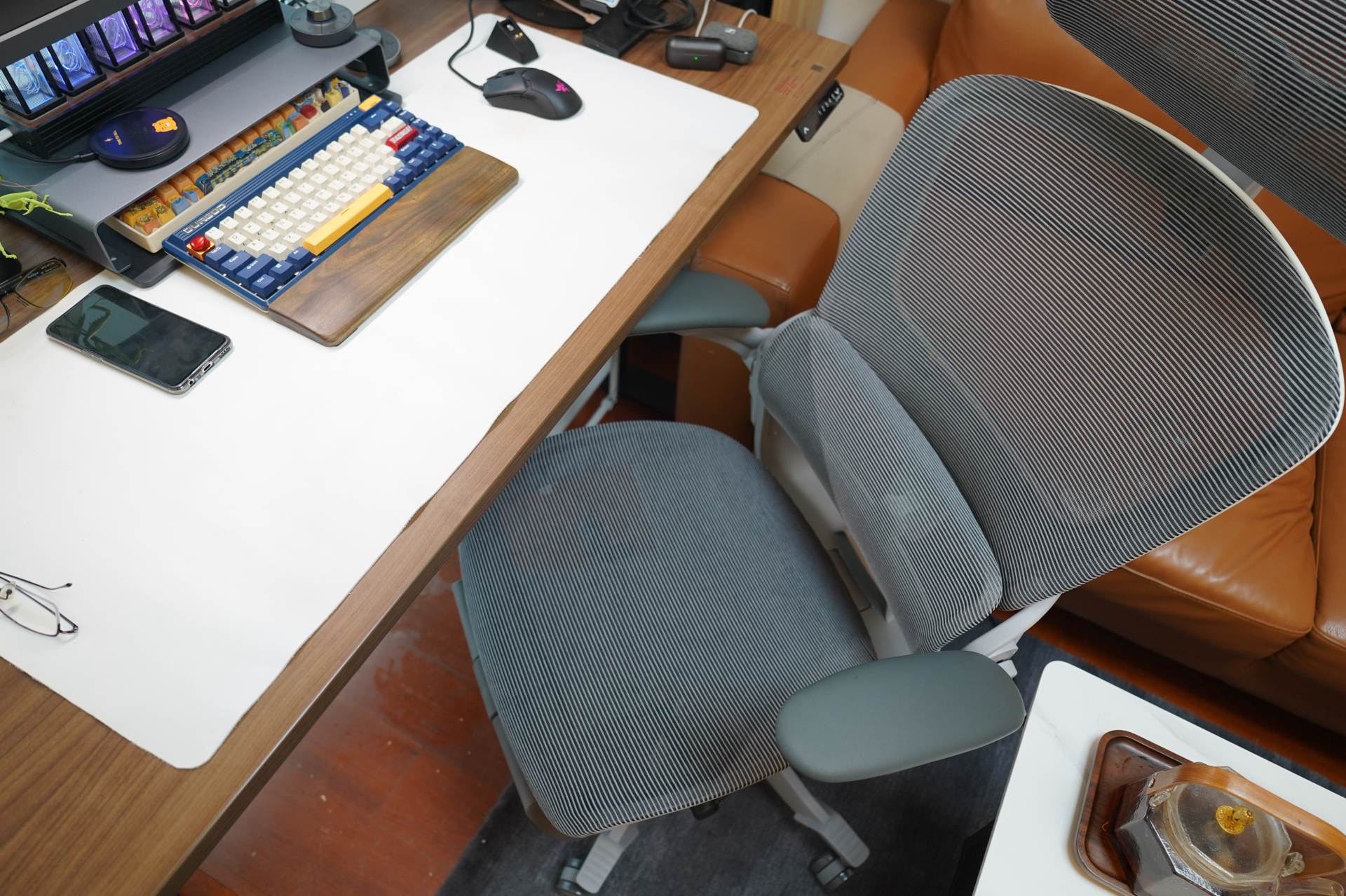 ▲和上一代的人体工学椅相比,这一台的工学椅除了增加可调腰靠,同时座位部分也经过全曲面加宽:久坐不累,也适合我这个胖子。