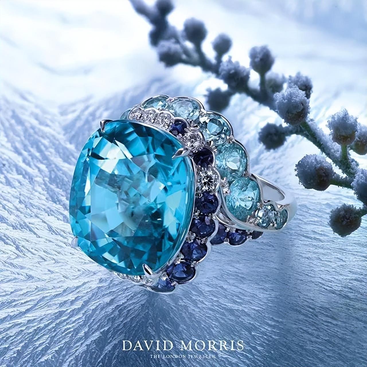 David Morris 镶嵌 20.13 克拉帕拉伊巴碧玺、蓝宝石戒指