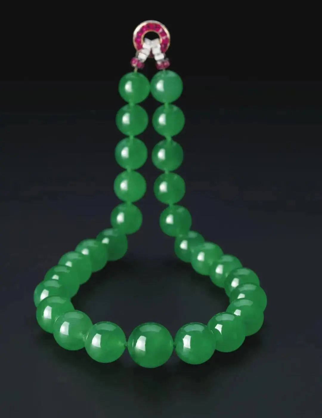比如 1930 年代,卡地亚为芭芭拉·霍顿设计了那条拍出天价的翡翠珠链,因为项链中的翡翠颜色深邃,因此选择搭配了红宝石,也仅仅一个精巧的红宝石几何风搭扣,就让这条中国宫廷流出的翡翠珠链有了不一样的味道。
