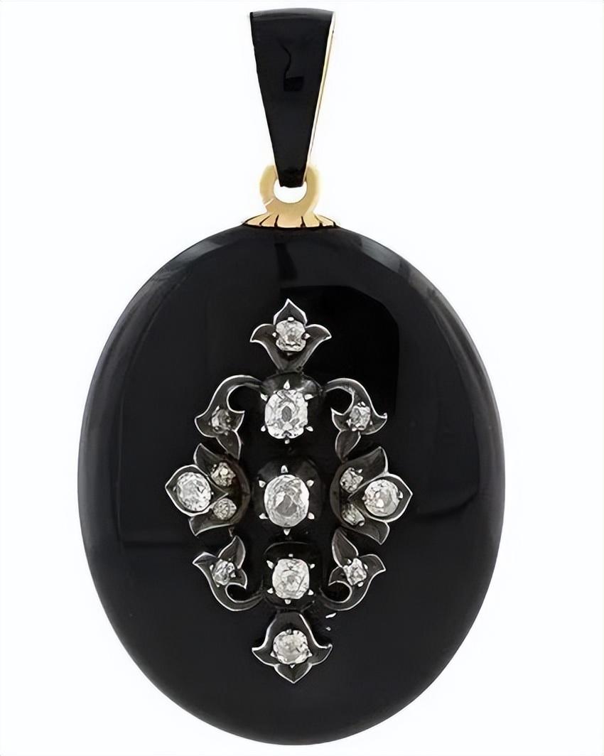 哀悼珠宝 缟玛瑙、钻石吊坠