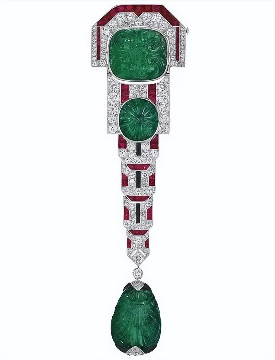 卡地亚 翡翠、红宝石胸针吊坠 约 1925 年