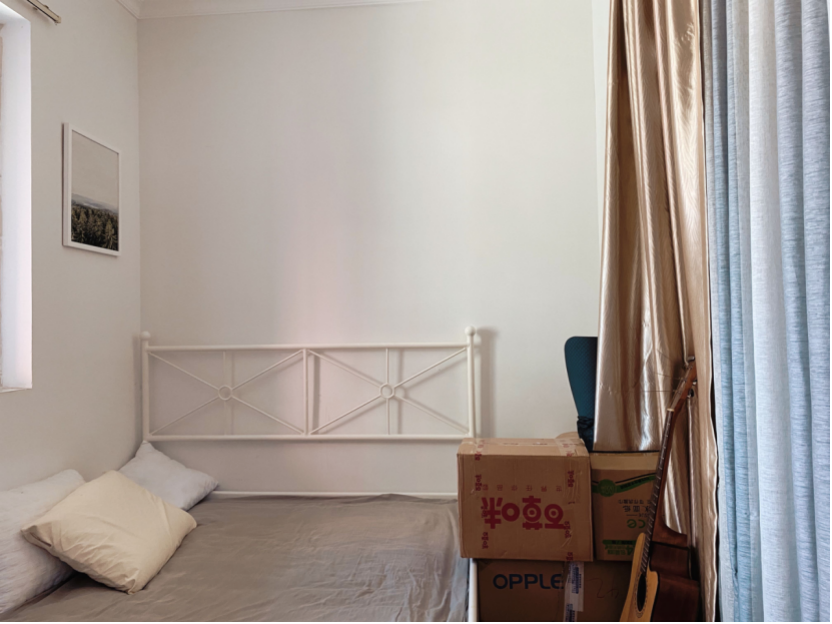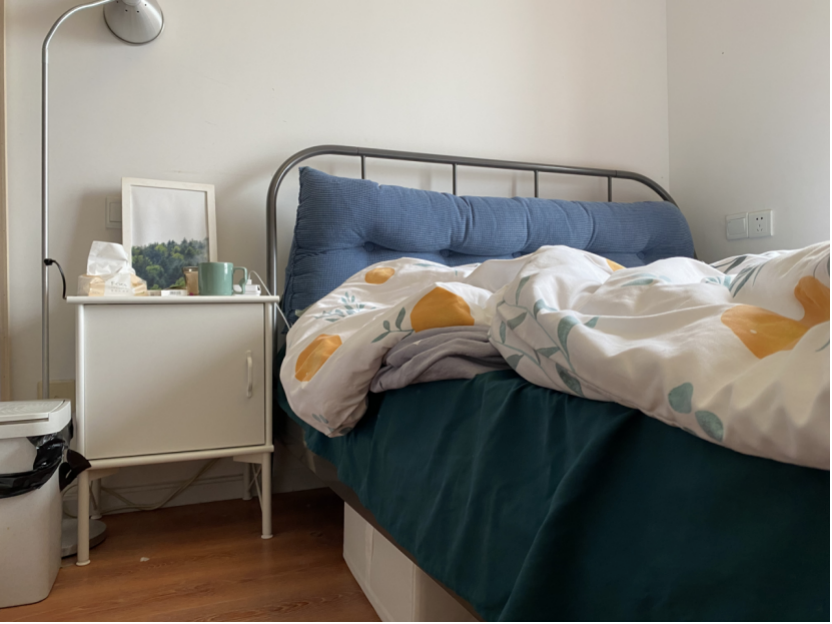 次卧因为很久没住人也是沦为了置物间。堆了很多箱子,床上也有很多灰尘,阿姨归置了下杂物位置,打扫了床铺,还有床底的积灰也一并扫除了。