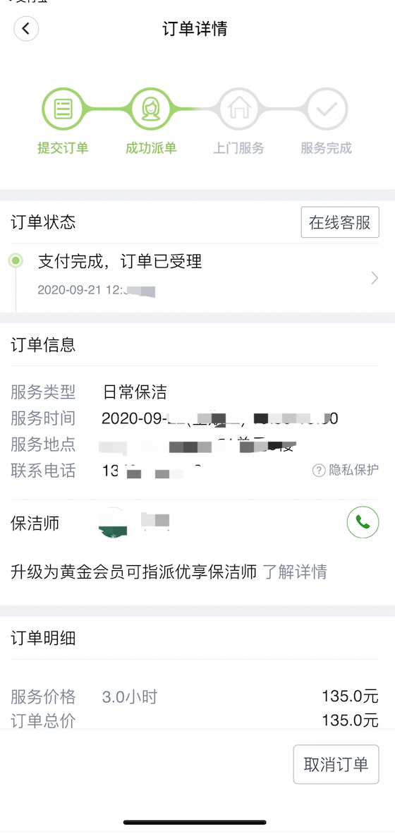 但是阿姨帮不可以通过app改约,只能提前与阿姨电话协商或取消订单,重新下单。总的来说下单流程还是很顺畅的。
