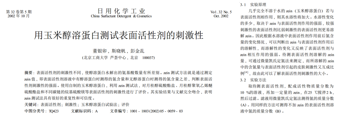实验原理简单来说就是,玉米醇溶蛋白是一种几乎不溶于水的物质,但与表面活性剂相作用,其水溶性就会加大。而且,表面活性剂的刺激性越强,玉米醇溶蛋白的溶解性就越大。所以,同一浓度的洗衣液与玉米醇溶蛋白充分混合后,沉淀越多,说明洗衣液的刺激性越小,反之刺激性越大。