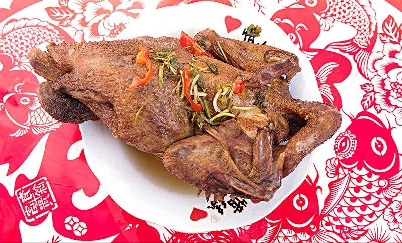 沟帮子熏鸡沟帮子是辽宁的一个地方,这里和德州及道口一样也是一个交通枢纽,所以才能让沟帮子熏鸡出名!据传沟帮子熏鸡配方来自于清朝,秘方来自于宫廷御厨。沟帮子熏鸡颜色枣红,晶莹光亮,细嫩芳香,烂而连丝,烟熏味浓,回味无穷。