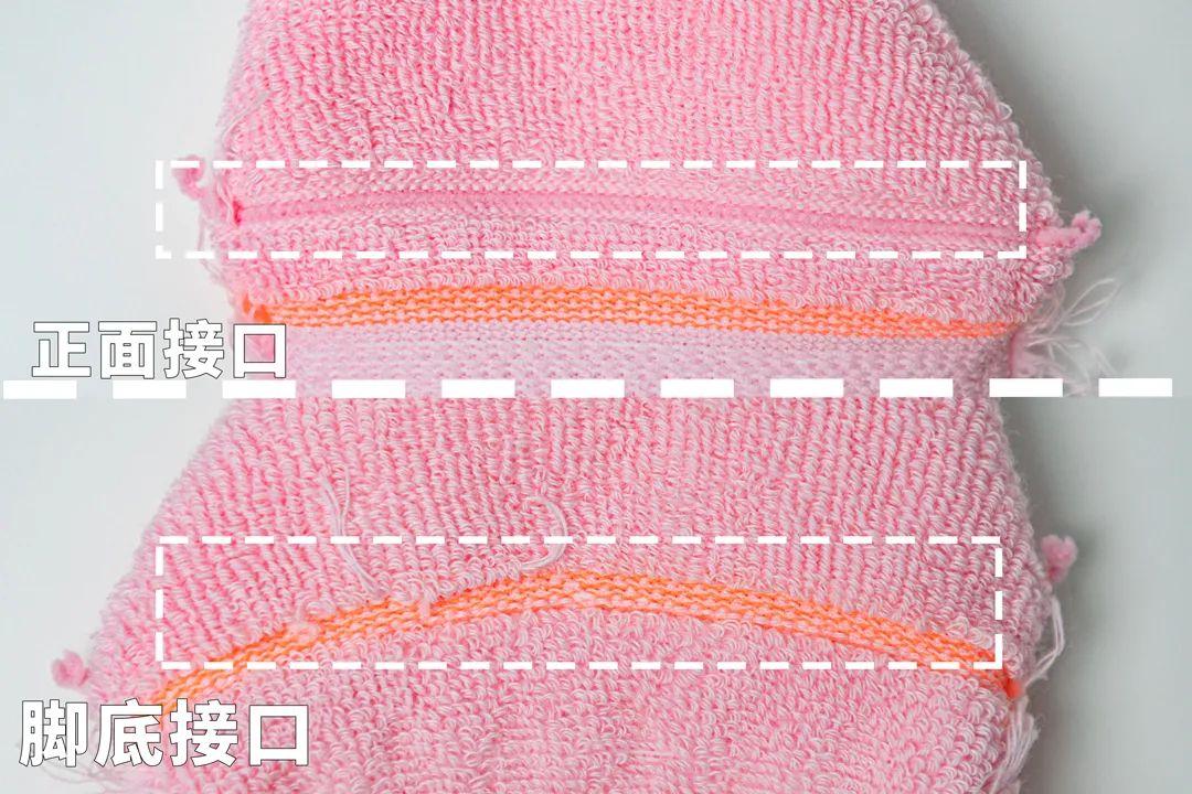 脚底部分不同于一般的毛巾袜,除了大面积的线圈设计之外,还穿插的线圈裁断设计。