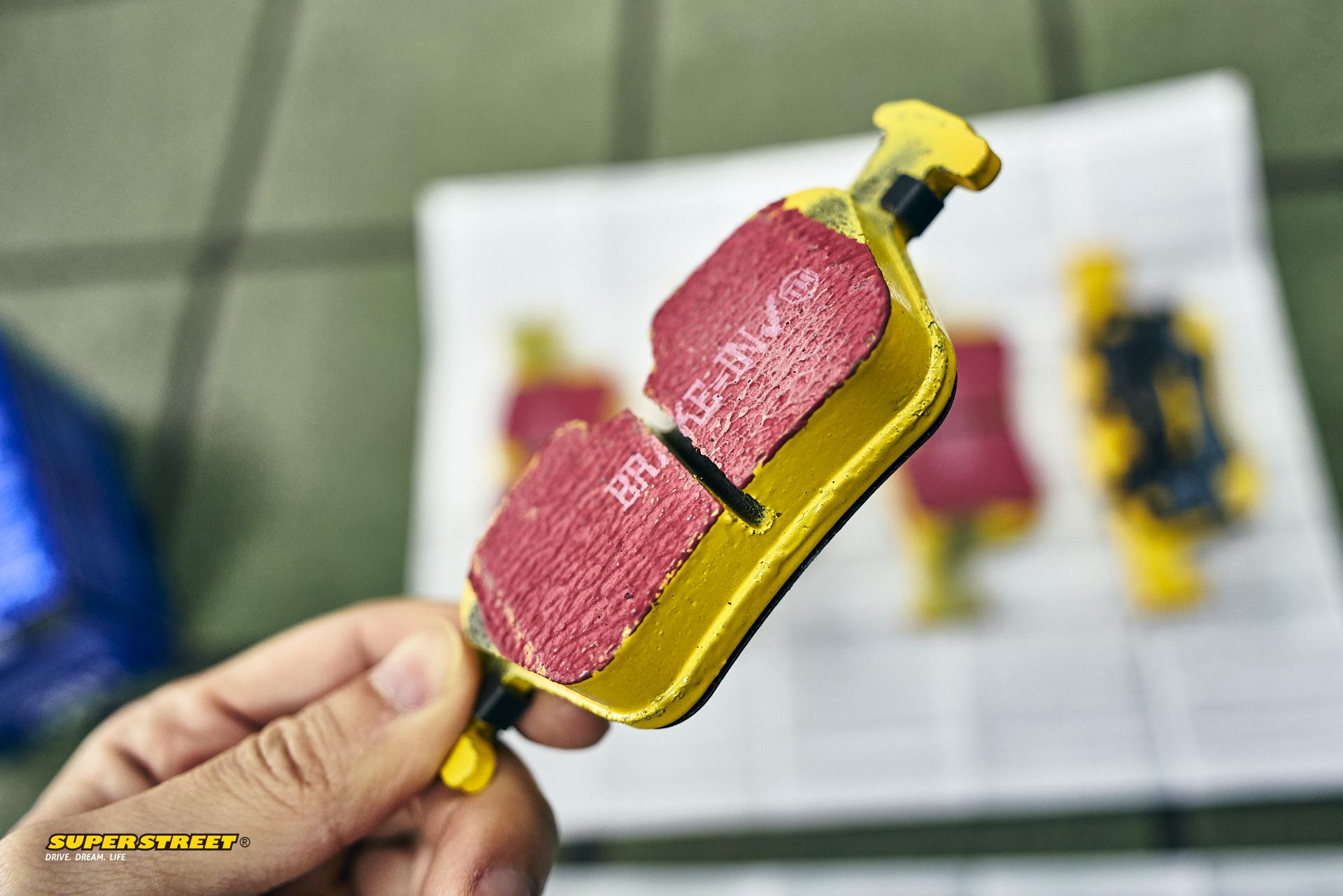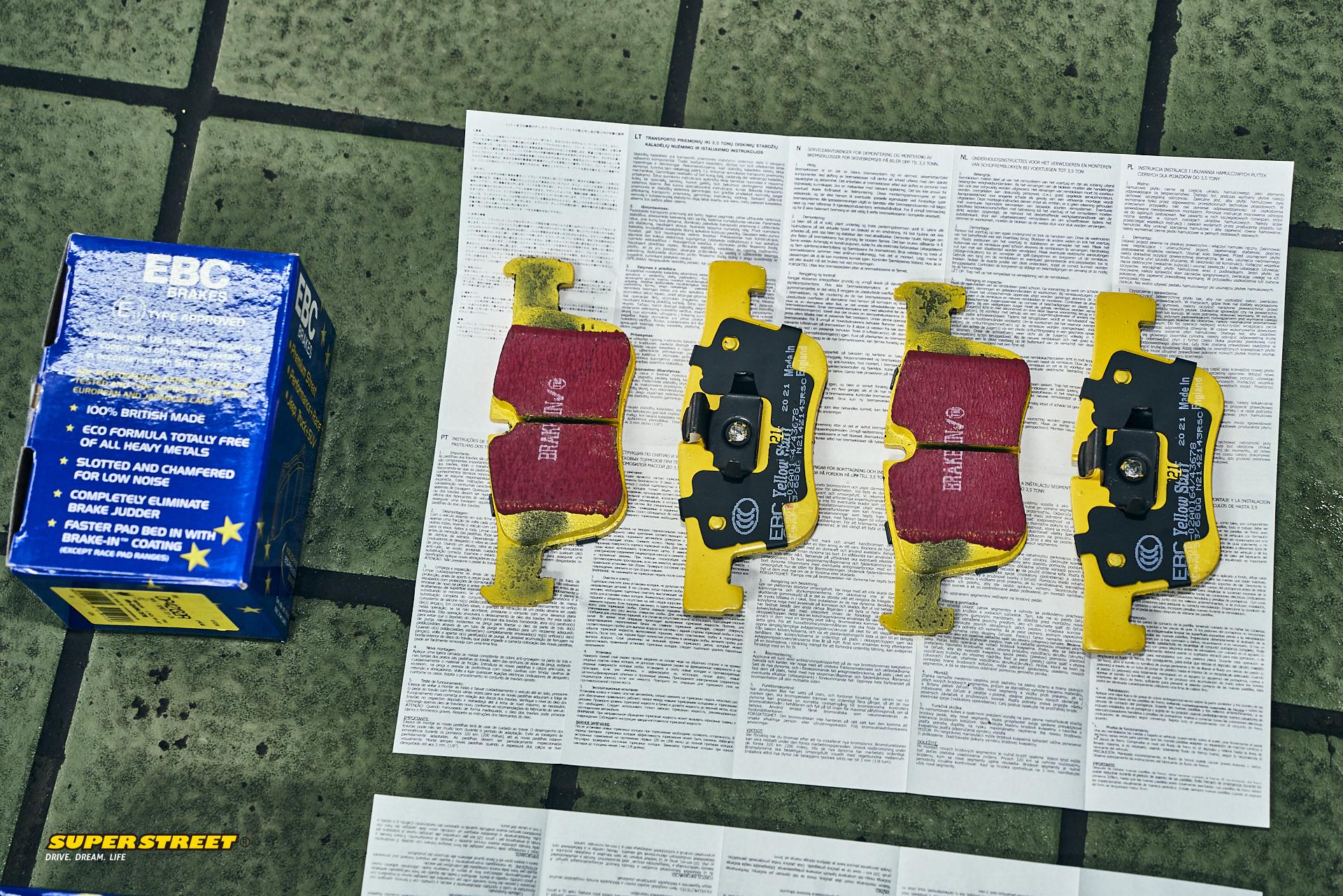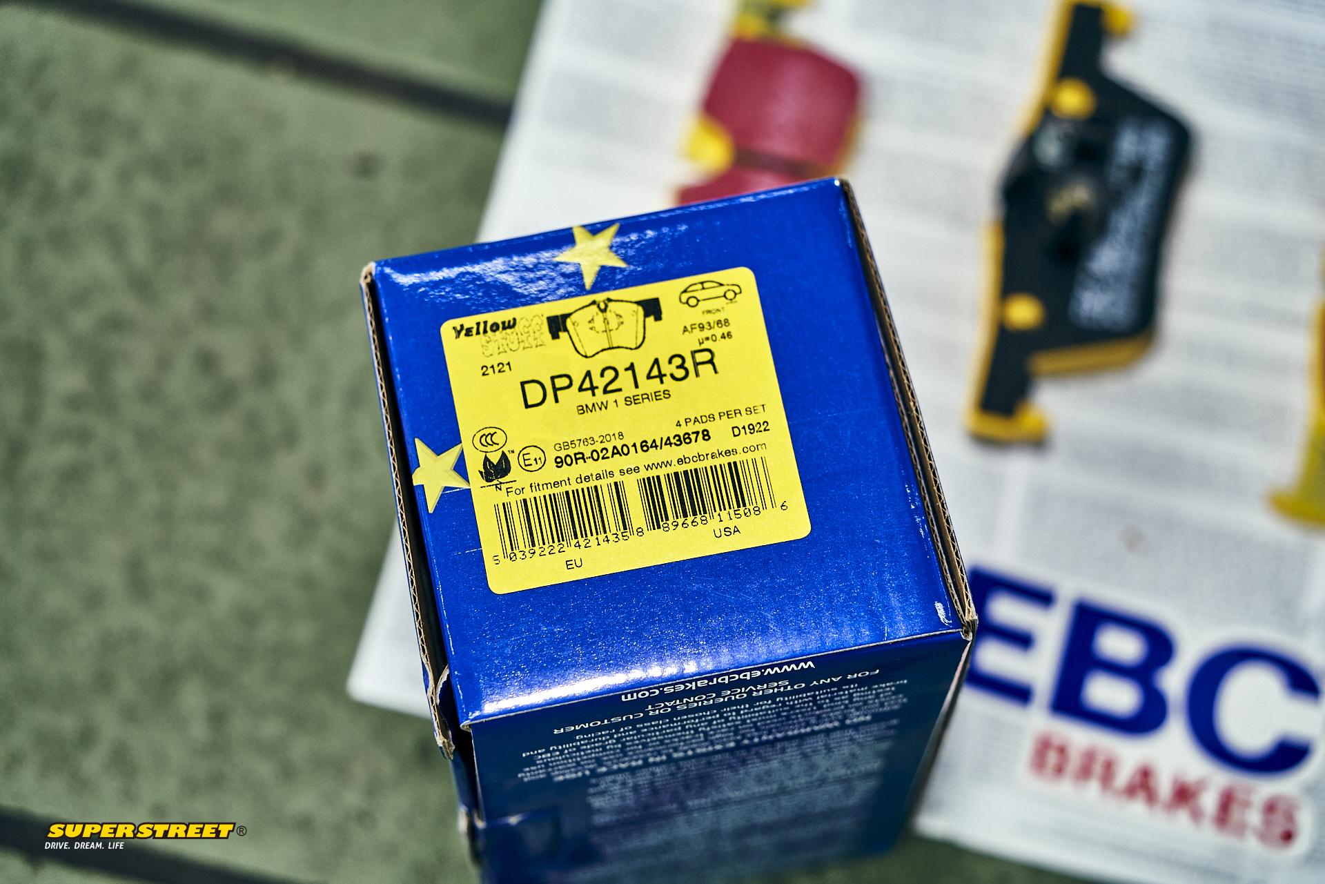 EBC品牌街道使用的刹车片分为三种,分别对刹车片表面进行涂抹不同的颜色以示区别,分别是绿皮、红皮和黄皮。再往上也有蓝皮、橙皮、金属皮等等,是适合赛道驾驶使用的。