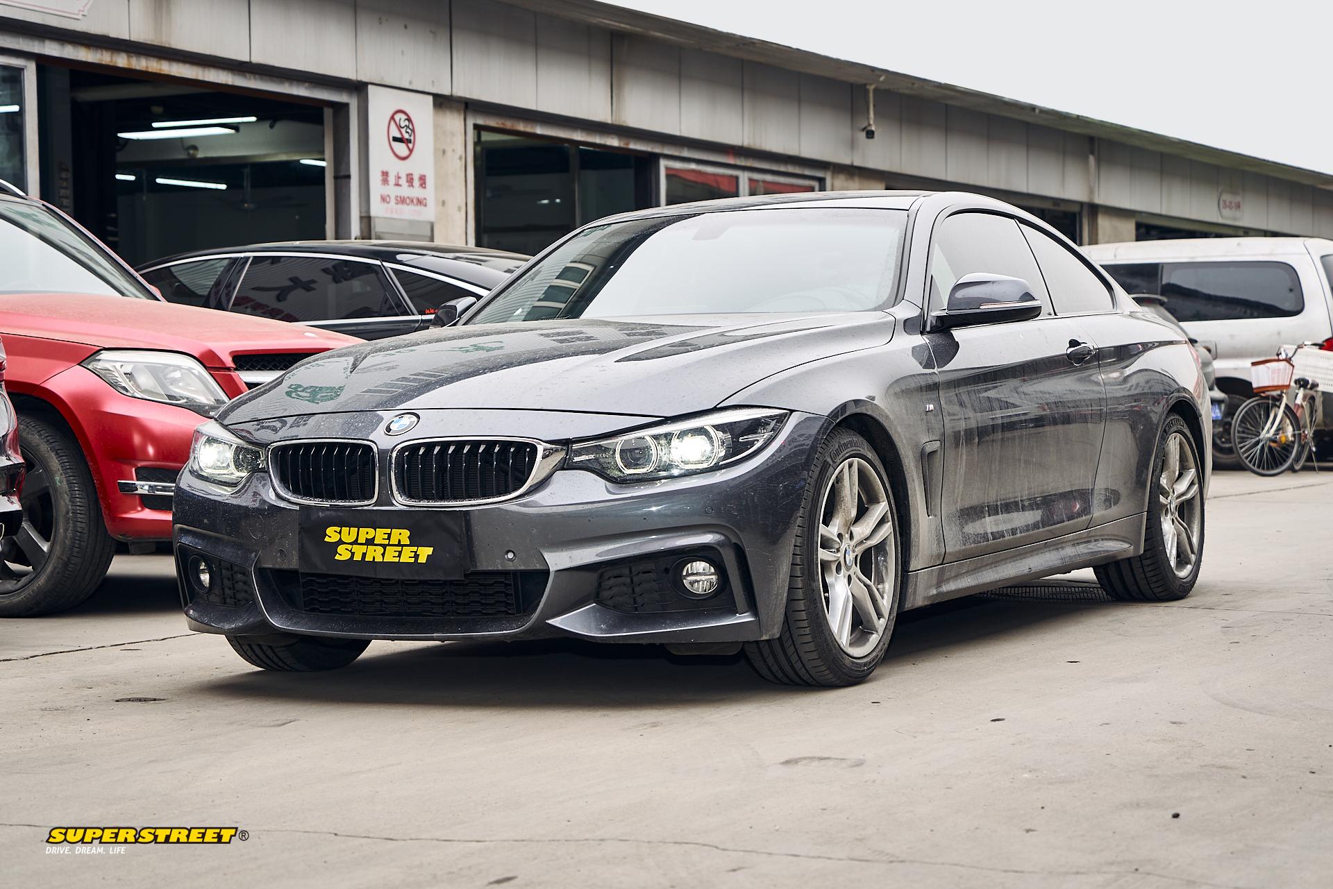 宝马4系看起来很像3系的双门版,2017款 425i M运动套装,2.0T发动机,184马力,大扭矩270N·m,2门4座硬顶跑车。这台车从外观看并没有进行改装,保持了原厂的状态。