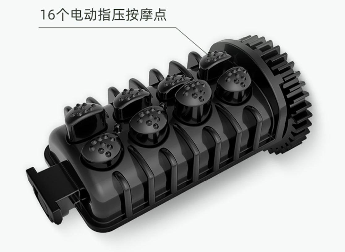 中间则是电动按摩指压,单脚有16个按摩点,按摩脚心的穴位。