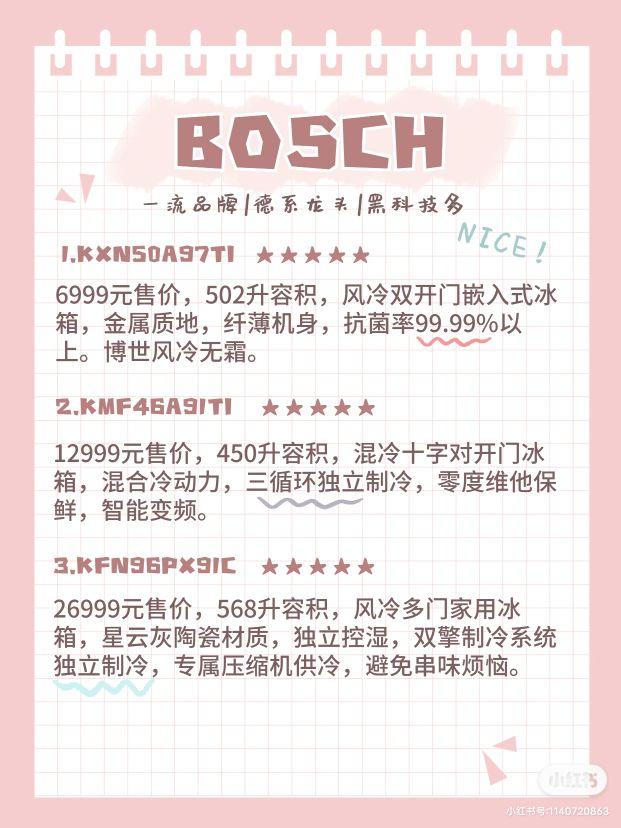 本期这里给大家列举了冰箱界的五大品牌,西门子、美的、东芝、BOSCH、松下。