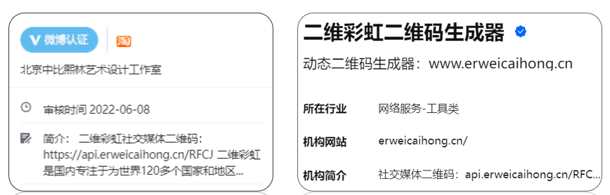 社交媒体二维码,还能以短连接的形式展示。点击短链接和扫描二维码出现的界面是一样的。可以将这个短链接放在企业社交媒体主页简介处,比如微博、知乎、B站等。