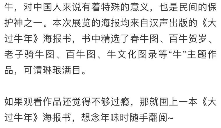 现在,乐开书店正在举办《“大过牛年”海报展》,不妨趁着元宵节来此游逛,收获一波浓郁年味,为辛丑春节画上一个圆满的句号。