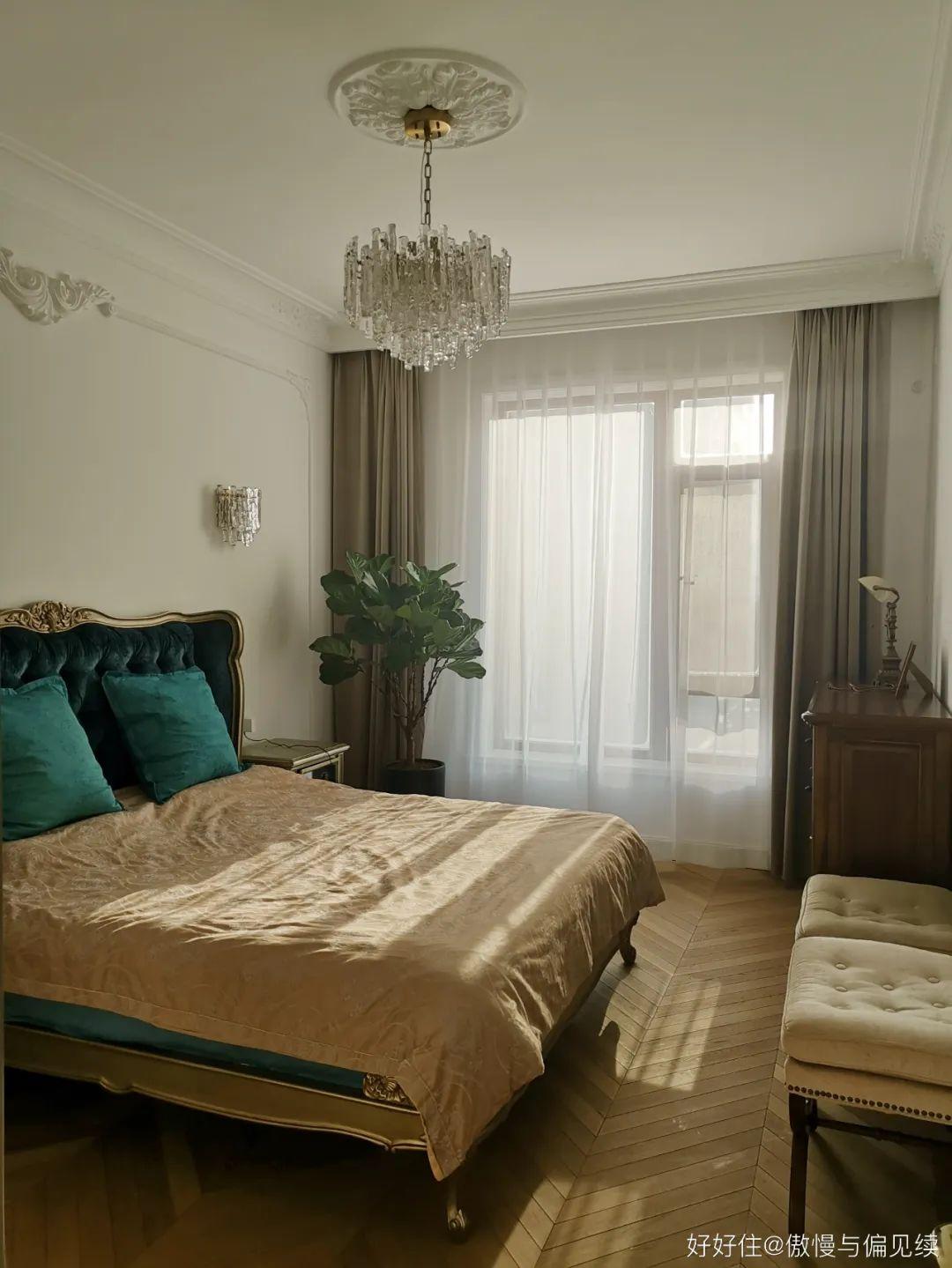 △ 住友@傲慢与偏见续:标配卧室——床,床头柜,床尾凳,五斗橱,定制四门衣柜。定制是古诺奇的,款式、价格和板材都比较满意,聊得也不错,装修早期就定下了。