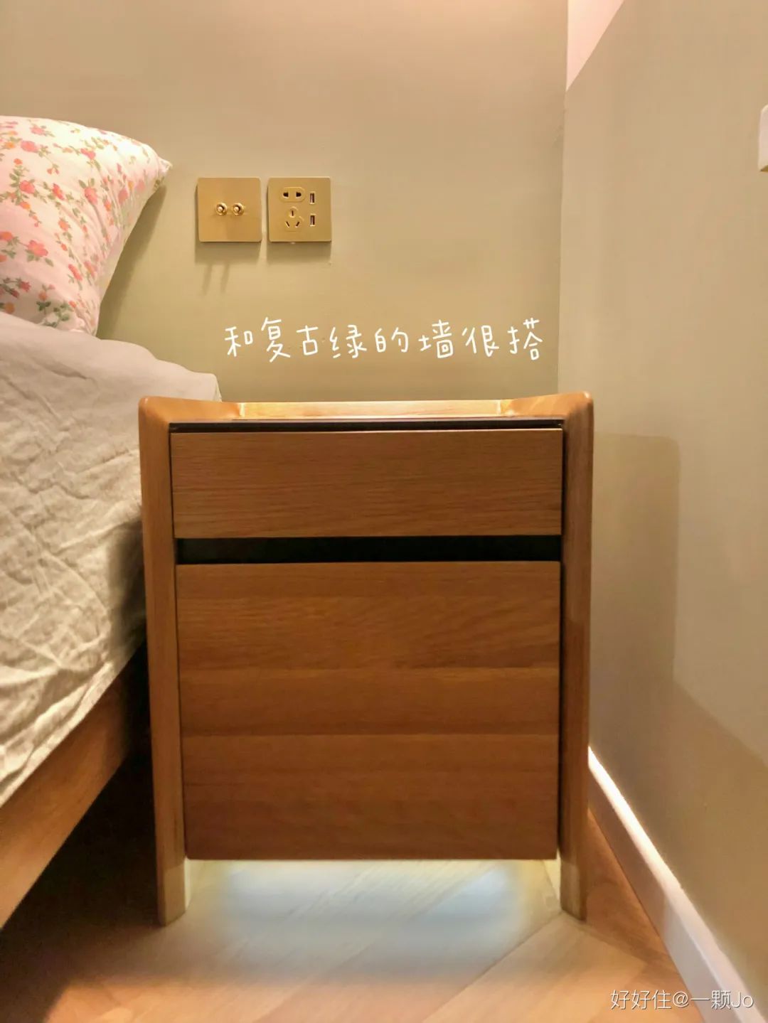 △ 住友@一颗Jo:搬家前,我时不时在想自己需要什么样的床头柜来满足自己的各种需求。它得有复古的气质,可以搭配卧室里其他的物件;它要有不错的收纳能力,可以装得下我一本本睡前读物;它要具备无线充电功能。不想在迷迷糊糊的睡前再找充电口了。