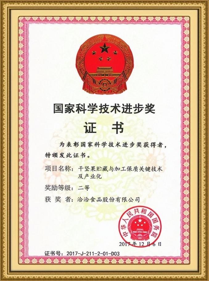 洽洽锁定“保鲜”的密码不仅在于全产业链制造,更重要的是,洽洽掌握的关键保鲜技术在背后保驾护航。洽洽凭借科研团队的不懈努力,从种子基础研究、原料基地建设、储存与加工技术研究与突破、生产工艺不断升级等方面进行“新鲜”布局,在理论和实践方面,对于整个坚果行业的发展都具有切实可行的意义。近年来,洽洽在全产业链取得了211项专利,且其参与的“干坚果贮藏与加工保质关键技术及产业化”项目荣获国务院颁发的科学技术进步奖。同时,洽洽设立了坚果行业博士后科研工作站,还获得中国产学研创新示范企业和中国产学研创新成果奖一等奖。