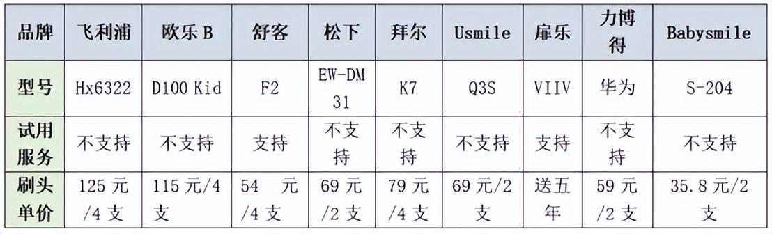 刷头成本方面,扉乐原价是59元/2只,不过好在能送5年刷头,几年下来能省大几百,其他品牌像舒克、babysmile、拜尔的刷头性价比也还算可以,再来的就相对比较高了。