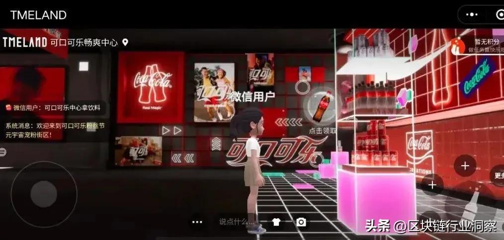今年10月份,可口可乐合作腾讯音乐旗下虚拟音乐社交平台TMELAND,打造元宇宙宠粉街区,用户可以化身数字人,在其中沉浸式逛街、娱乐,甚至和明星代言人合照打卡,真正实现数字化体验。
