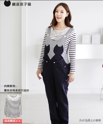 时尚的韩版孕妇装备下课,独特的拼色带来个性潮流感,可爱的两个小猫咪装饰,宽松可调节的背带裤,让准妈妈们在秋冬季节倍感舒适。